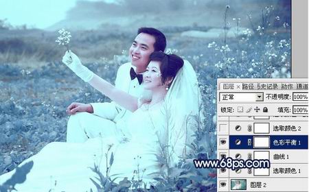 8、创建色彩平衡调整图层,对阴影,高光进行调整,参数设置如图20,21,效果如图22。这一步增加暗部及高光部分的蓝色